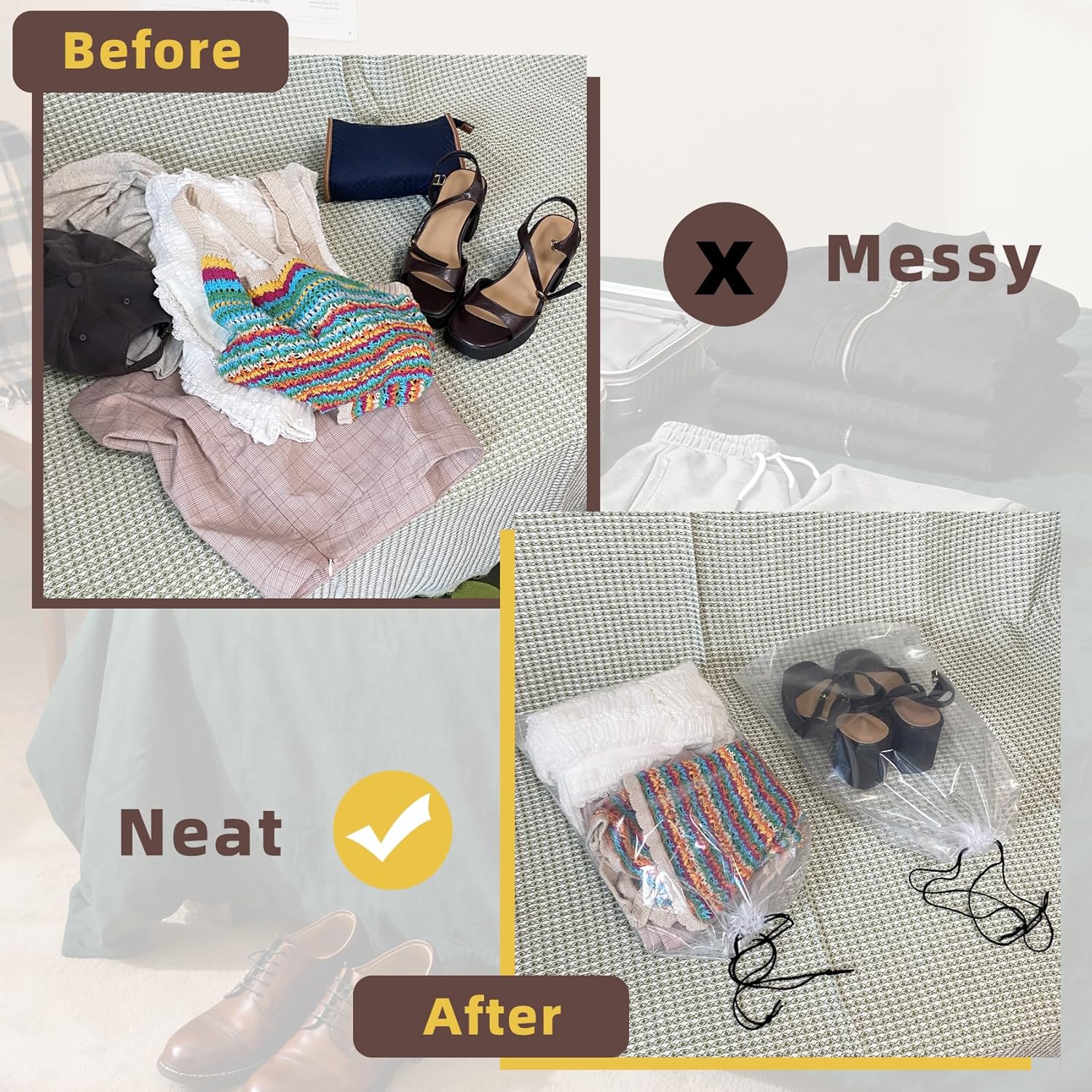 • Clear Design for Easy Use: The clear shoe bags help you quickly see contents without opening. Perfect travel bag for shoes, airport checks, or suitcase sorting—ideal for both men’s and travel shoes for women.