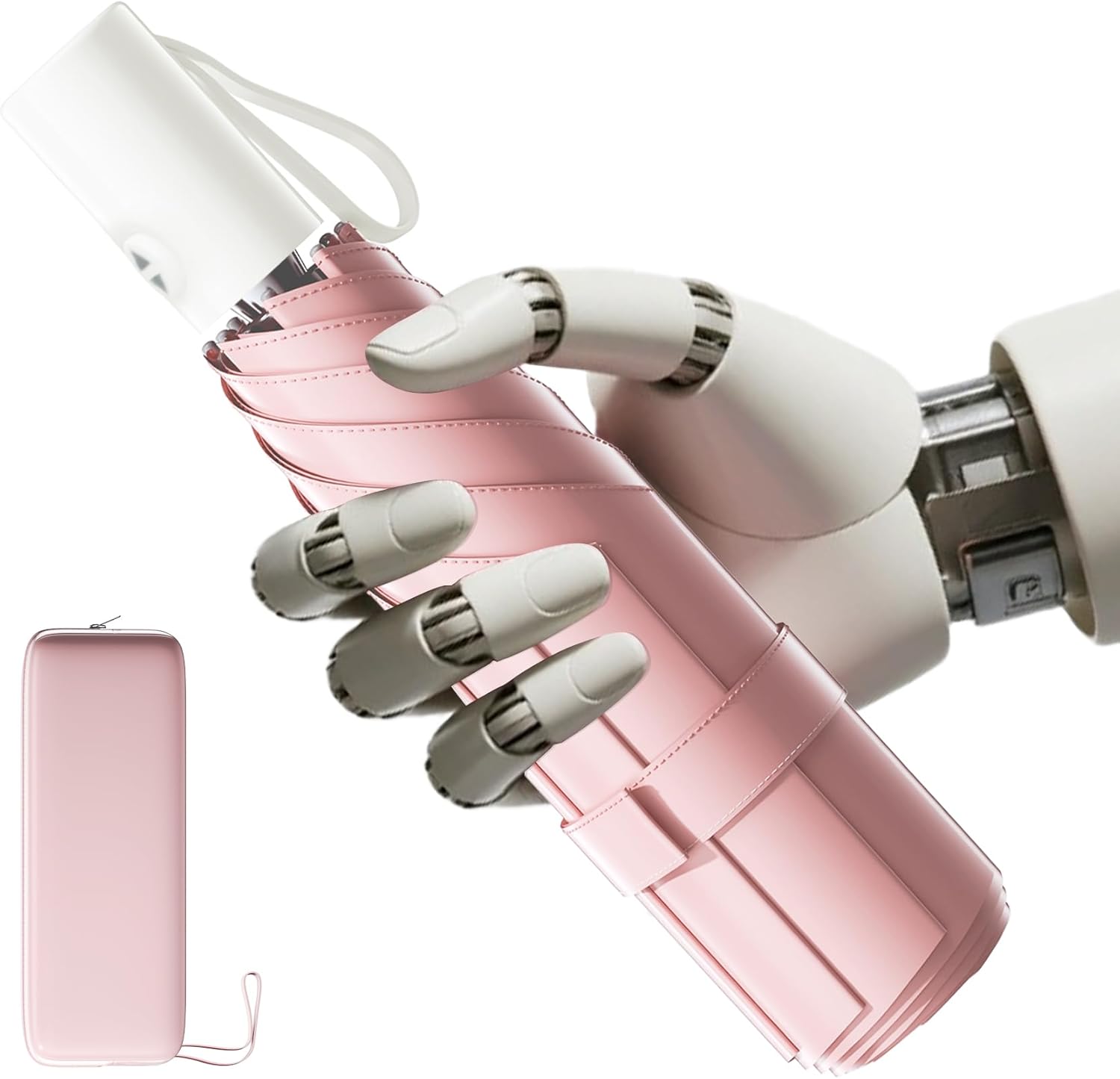 Automatic Mini Travel Windproof Folding Umbrella - UV Protection, Instant Open/Close for Rain/Sun, Small Compact Lightweight Design Fits in Tote Bag/Travel Case/Backpack for Commute, Women & Men
