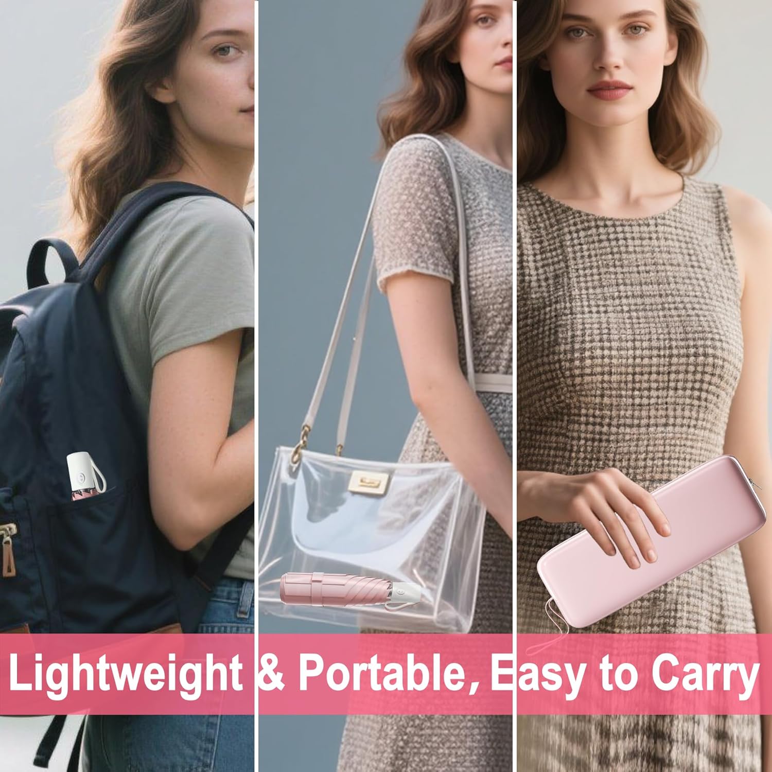 • 【Space-Saving Design】When Folded down, This Travel Umbrella Measures a Very Manageable 9.8IN(Smaller than Standard Water Bottle) & Only 9OZ; You Can Keep this Portable Umbrella in Your Car, Bag,Backpack,Briefcase or Purse, Perfect for Commute, Travel, Outdoor Events, So When the Harsh Sun is Beating down, You'll be Protected No Matter Where You are.