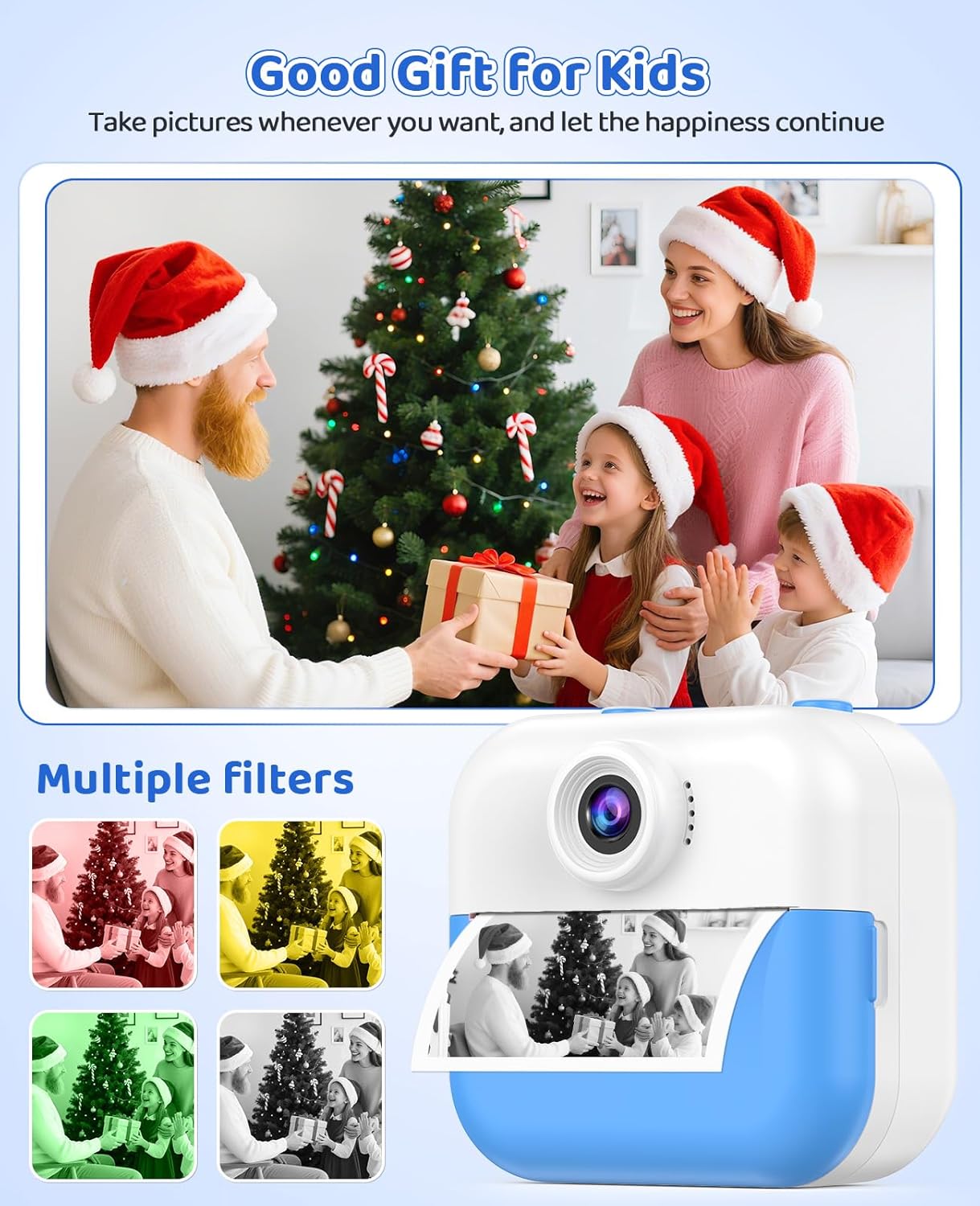 Kids Camera Instant Print for Christmas Birthday Gifts Age 4-12,Front Rear Dual Selfie Camera with 1080P Videos Toddler Portable Travel Toy 6 7 8 9 Year Old Boys Girls-Blue