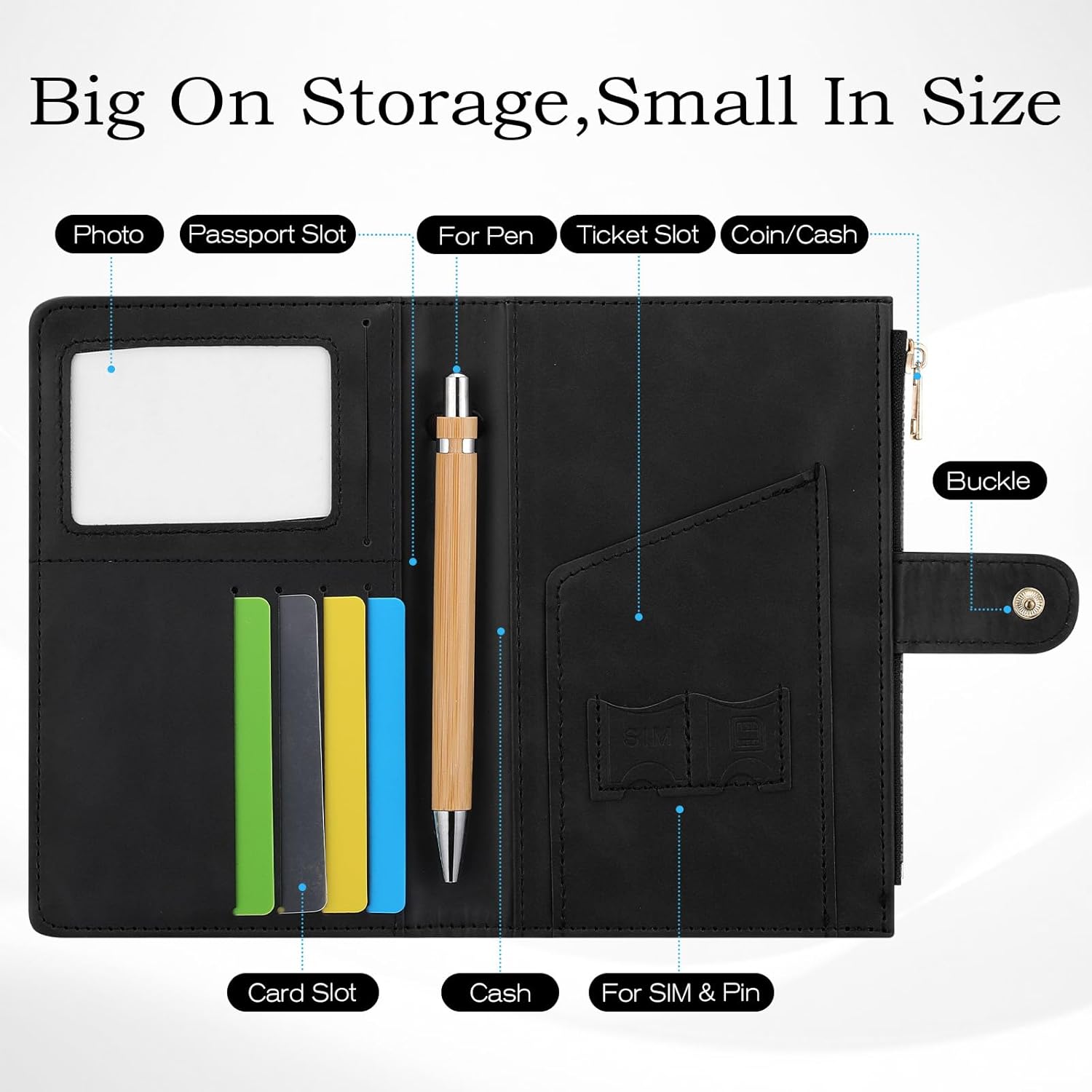 • Thoughtfully Crafted Organization: Beyond ordinary passport covers, this functional masterpiece merges minimalist elegance with practical intelligence. Dedicated sections for passports, boarding passes, credit cards, business cards, plus a pen loop and dual SIM trays ensure seamless organization