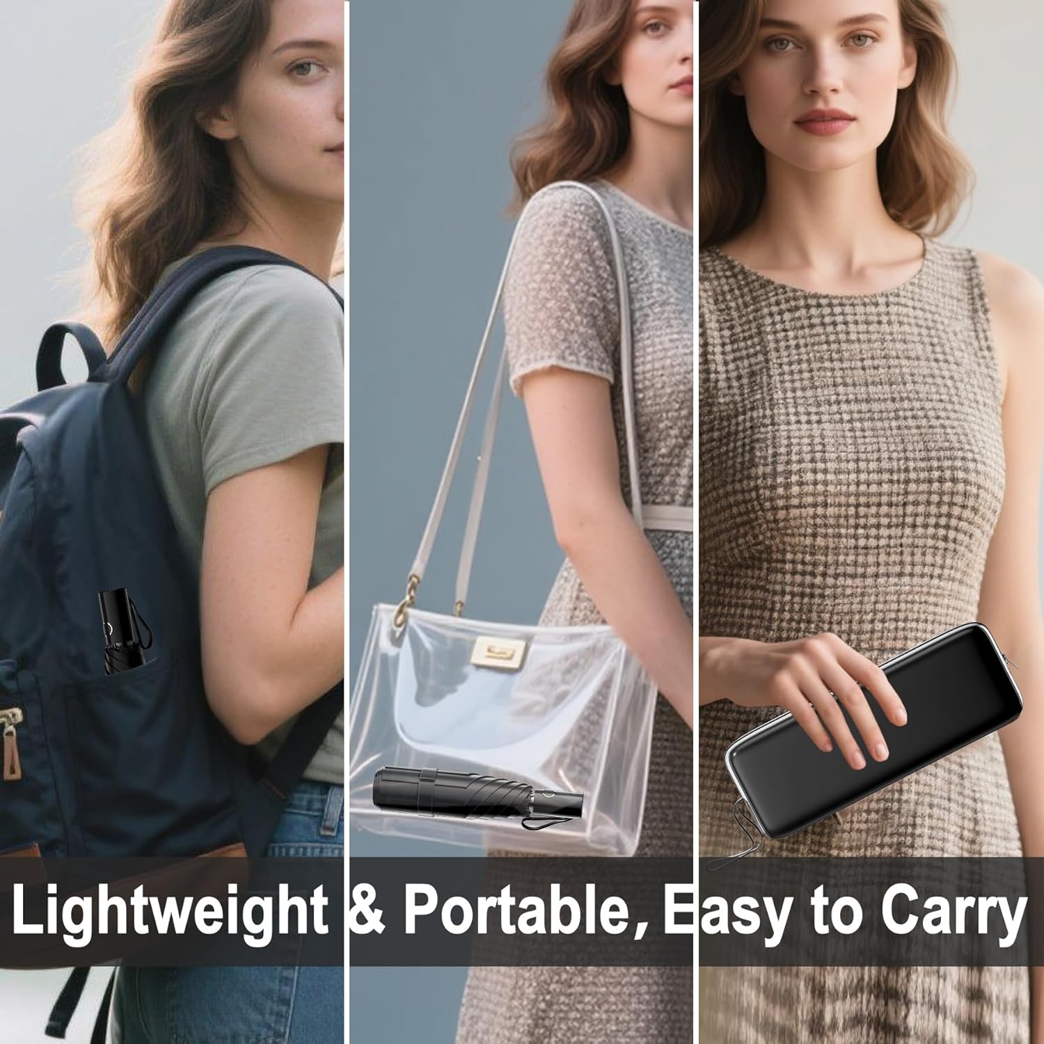 • 【Compact and versatile design】The size of this automatic folding travel umbrella is specially designed for easy portability. It measures only 9.8 inches (smaller than a standard water bottle) and weighs only 9 ounces. It can be easily stored in cars, bags, backpacks, briefcases or handbags, making it perfect for commuting, traveling, outdoor activities. It can protect you from rain on rainy days, from the sun on sunny days, from ultraviolet rays and strong winds. No matter where you are, it is convenient for you to travel at any time.