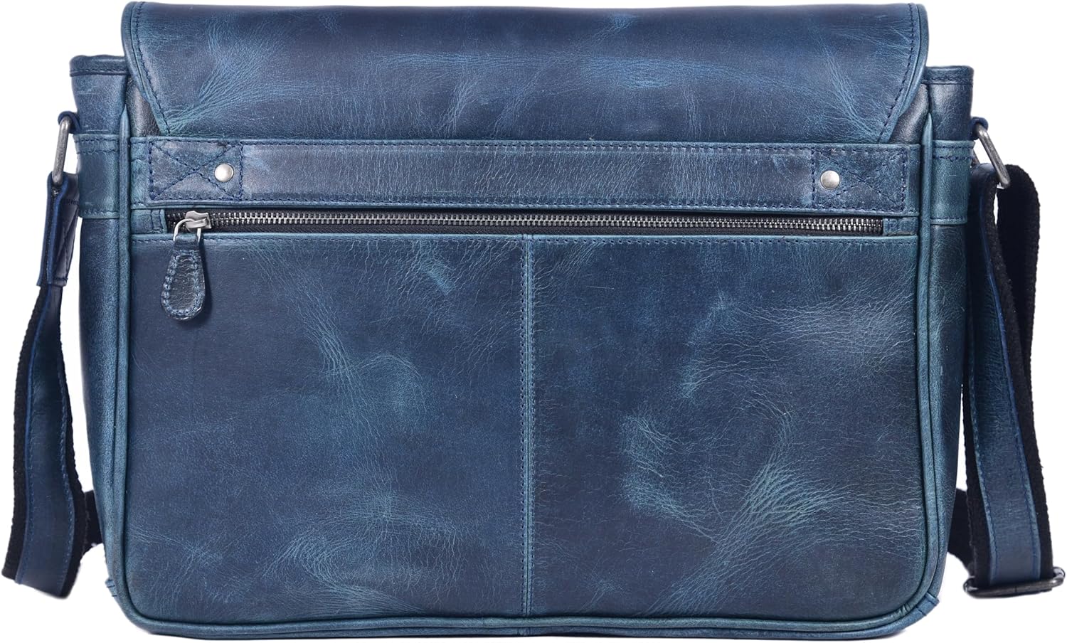16" Crossbody Bag Leather Laptop Messenger Bag For Men with trolley sleeve for school office (Ice Blue)