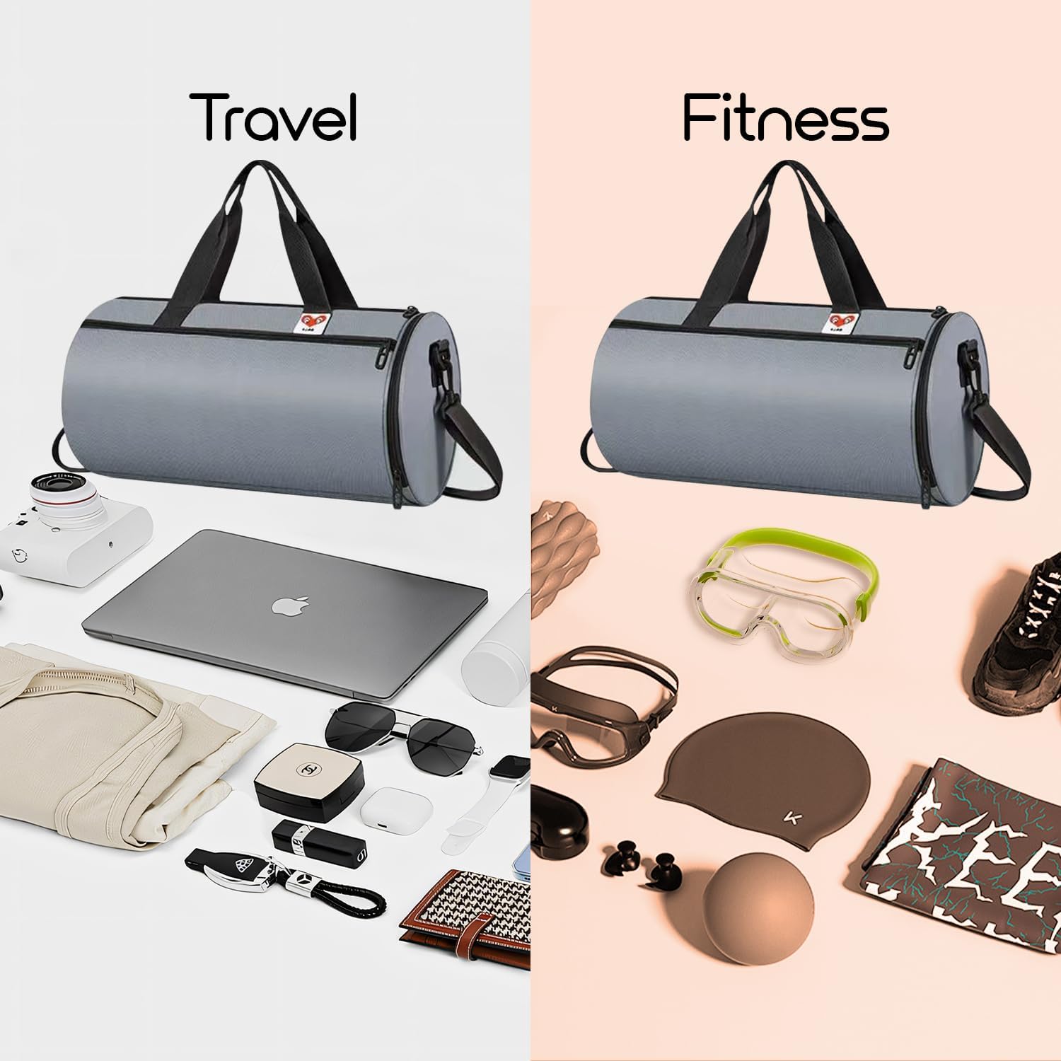 Gym Duffle Bag for Men & Women with Wet & Shoe Separated Compartment, 16 Inch and 16L Small Duffle Bag for travel Carry On, Swimming, Workout. Grey