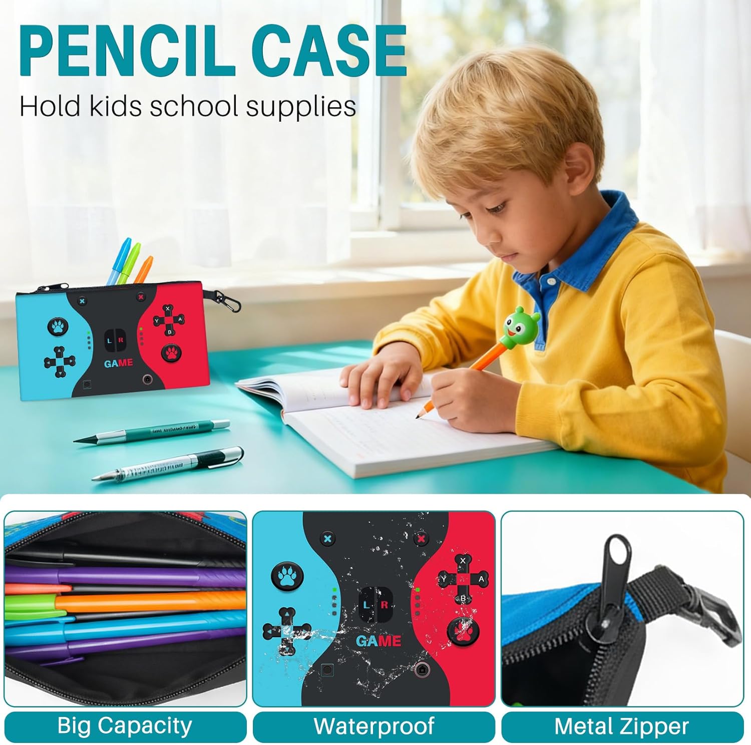 17 Inch Large Capacity Gamer Backpack for Boys - Complete 3pcs Set with Insulated Lunch Box and Zipper Pencil Case, Ideal for Elementary Middle School Teen Boys