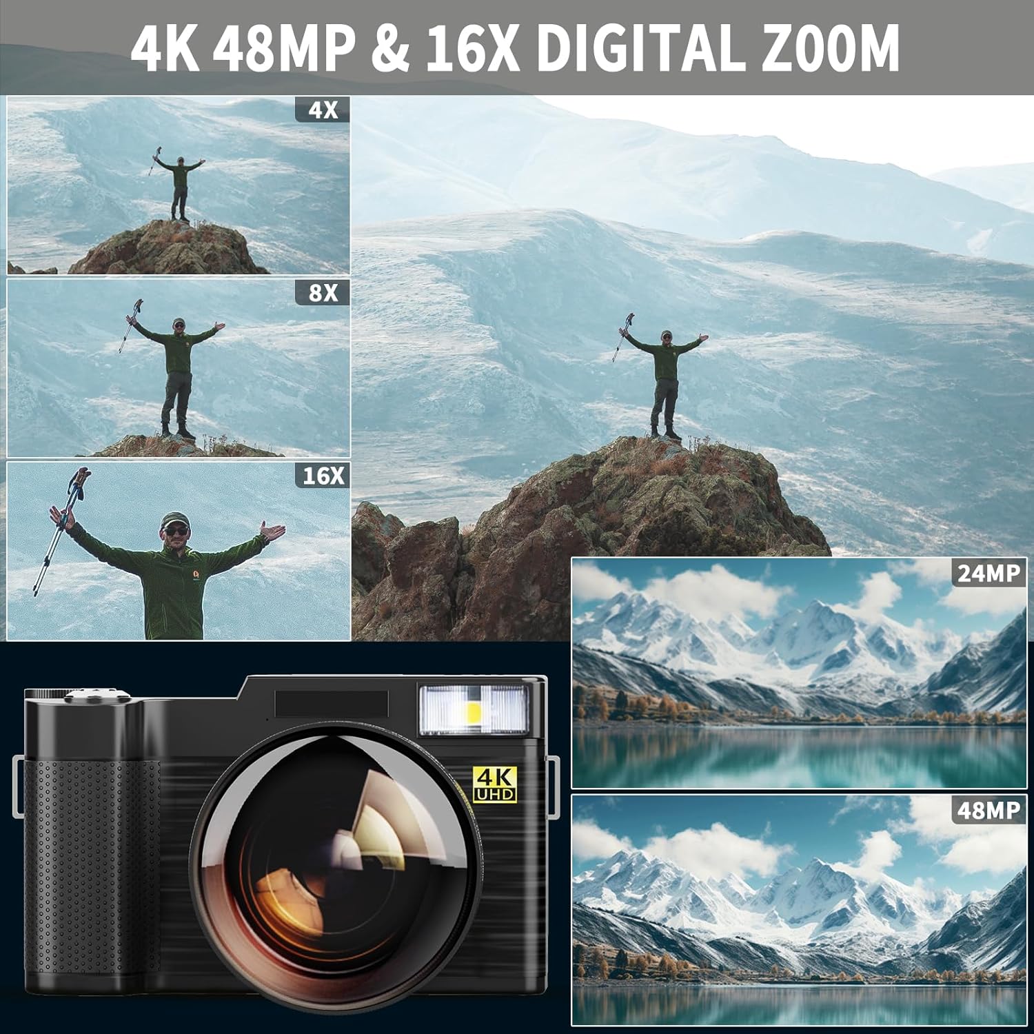 • 【4K UHD & Dual Lens Flexibility】Capture crystal-clear 4K videos and 48MP photos with advanced CMOS sensor. Switch seamlessly between wide-angle lenses for landscapes and macro lenses for close-up details, perfect for YouTube creators and travel vloggers.
