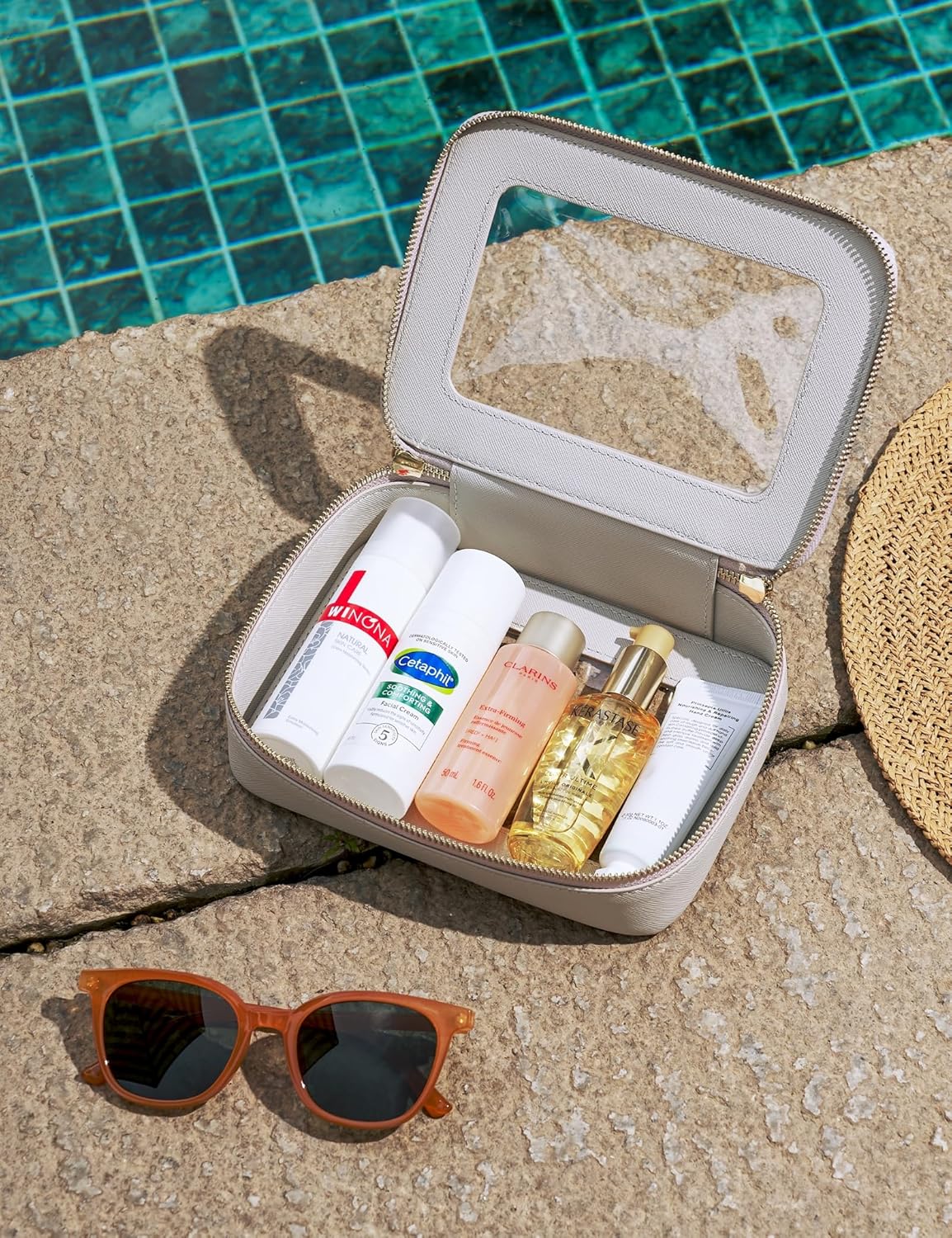 • [Premium Material and Durability] – The clear cosmetic cass, both the exterior and interior, is crafted from high-grade saffiano faux leather, which is highly scratch resistant, durable and exceptionally easy to keep clean. It features a smooth zipper for secure closure, and elegant light gold metal hardware accents, adding a luxurious and sophisticated touch to the bag's overall design.