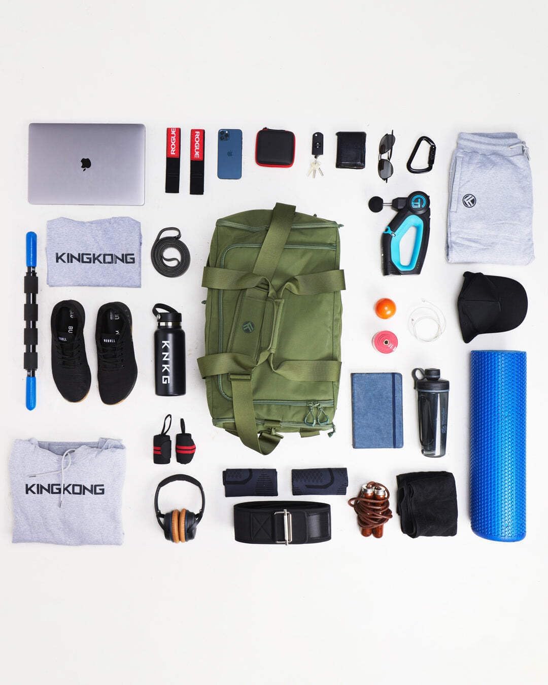 KNKG CORE Duffel Large 51L – Gym Bag with Lifting Belt Storage – Durable 500D Nylon, YKK Zippers – Green