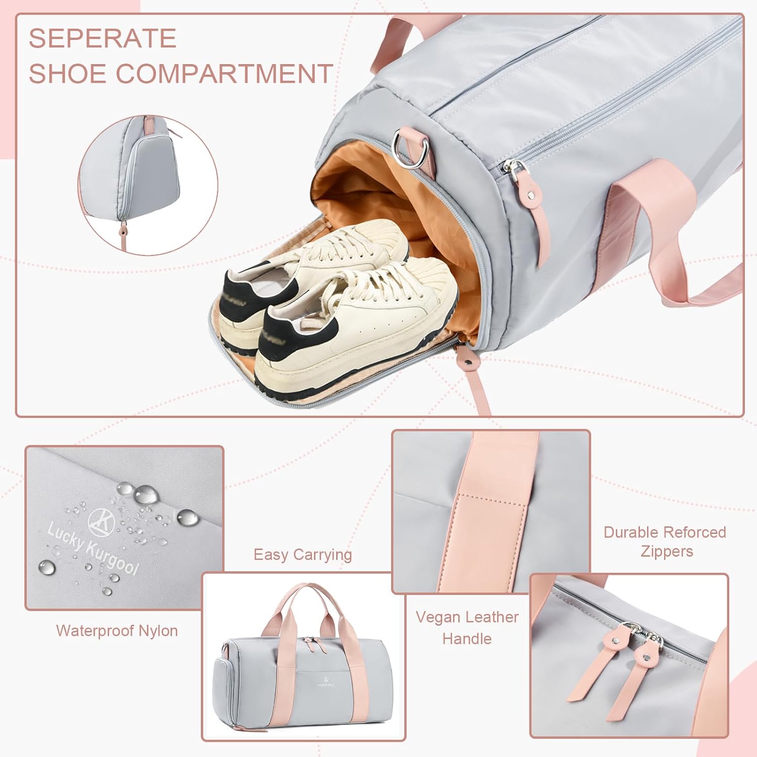 • SEPARATE WET POCKET: Travel bags for women has a separate waterproof PVC zipper pocket can prevent your clean clothes from getting soiled or wet, keeping everything organized and odor-free.