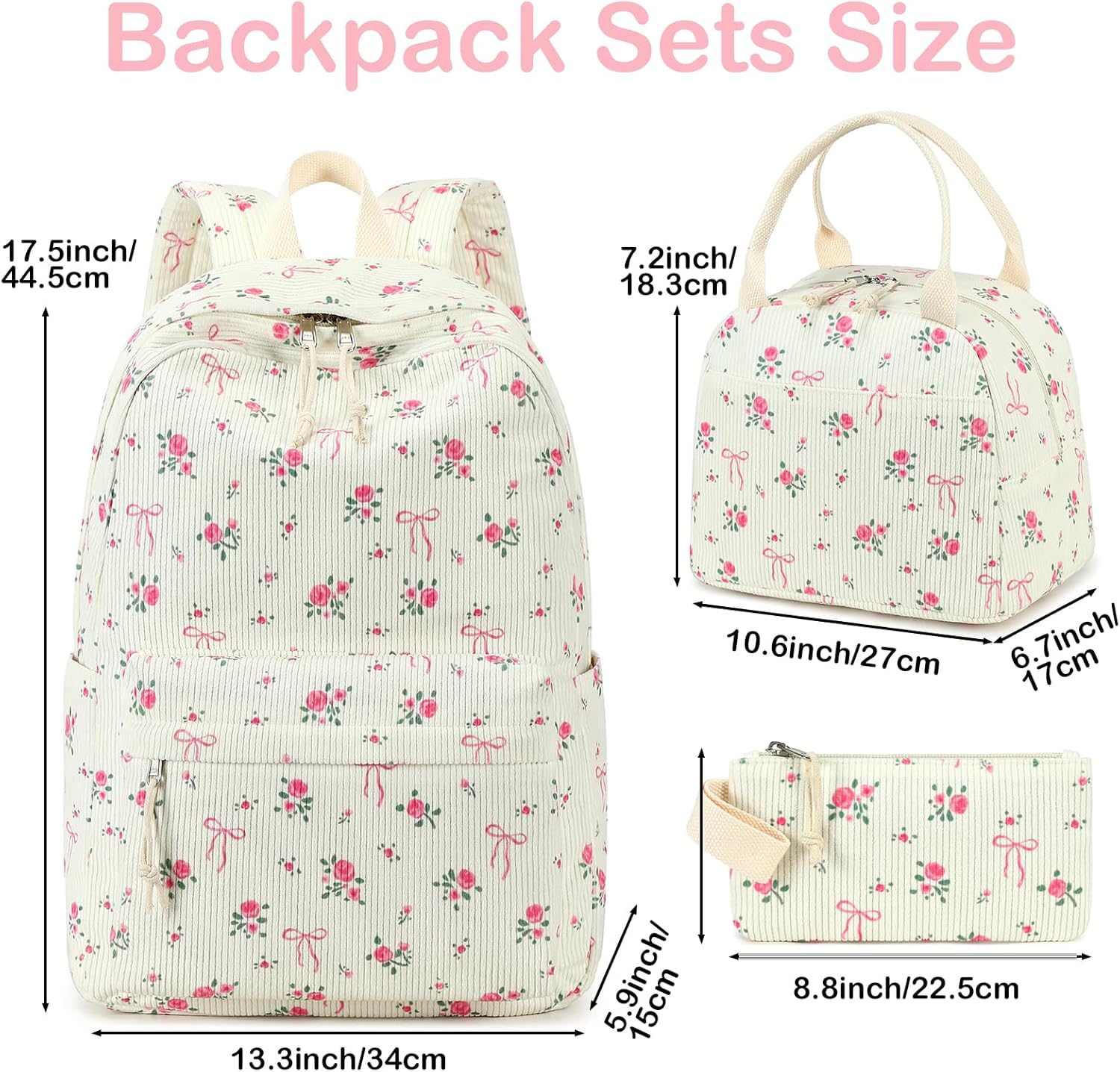 • 3 in 1 Girls Backpack Set : Girls school backpack set including bookbag size:17.3"x11.8"x5.5"(HxLxW), Insulated Lunch Box:8"x10"x7"(H*L*W), holds up to 14 inch laptop.