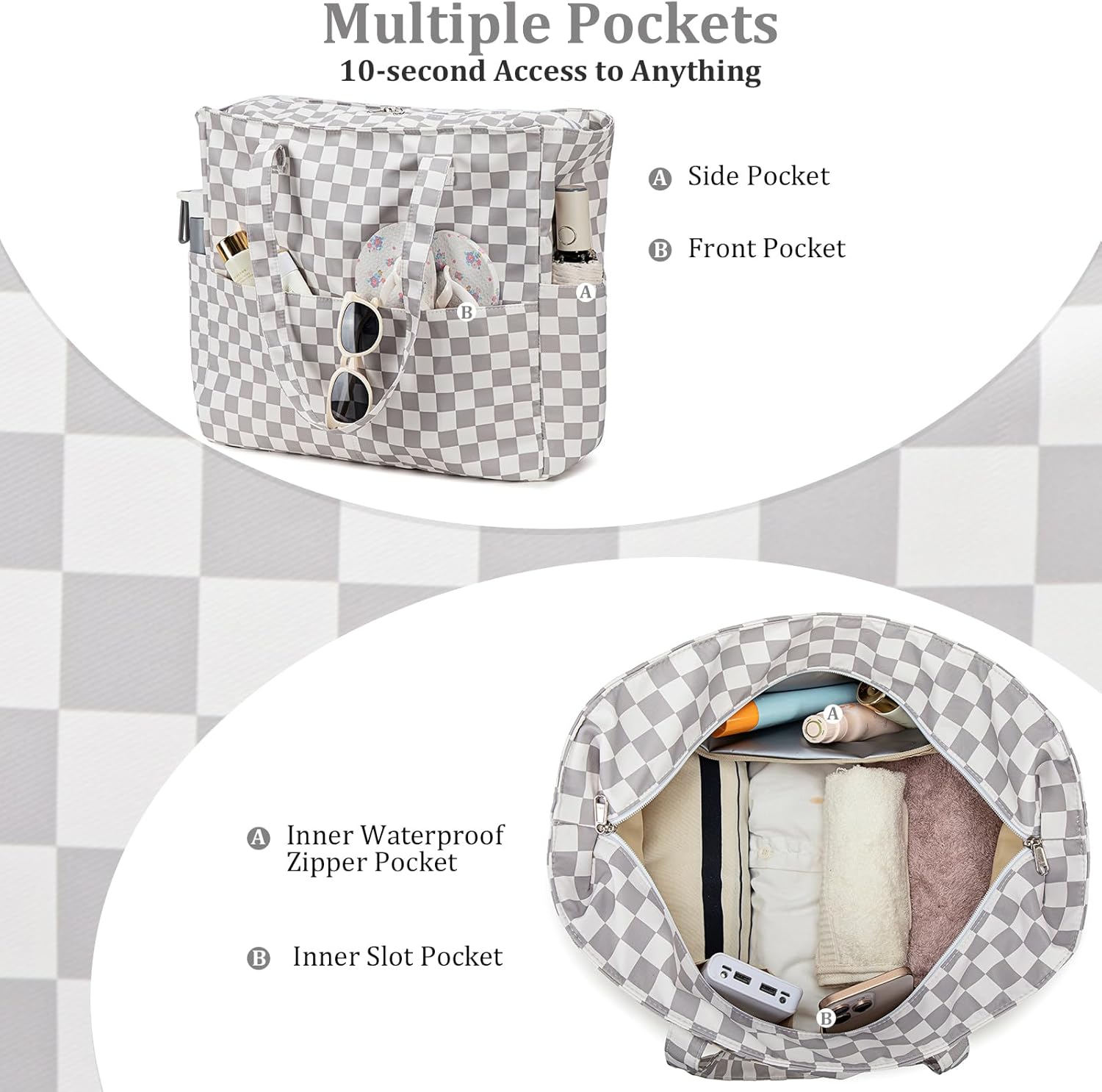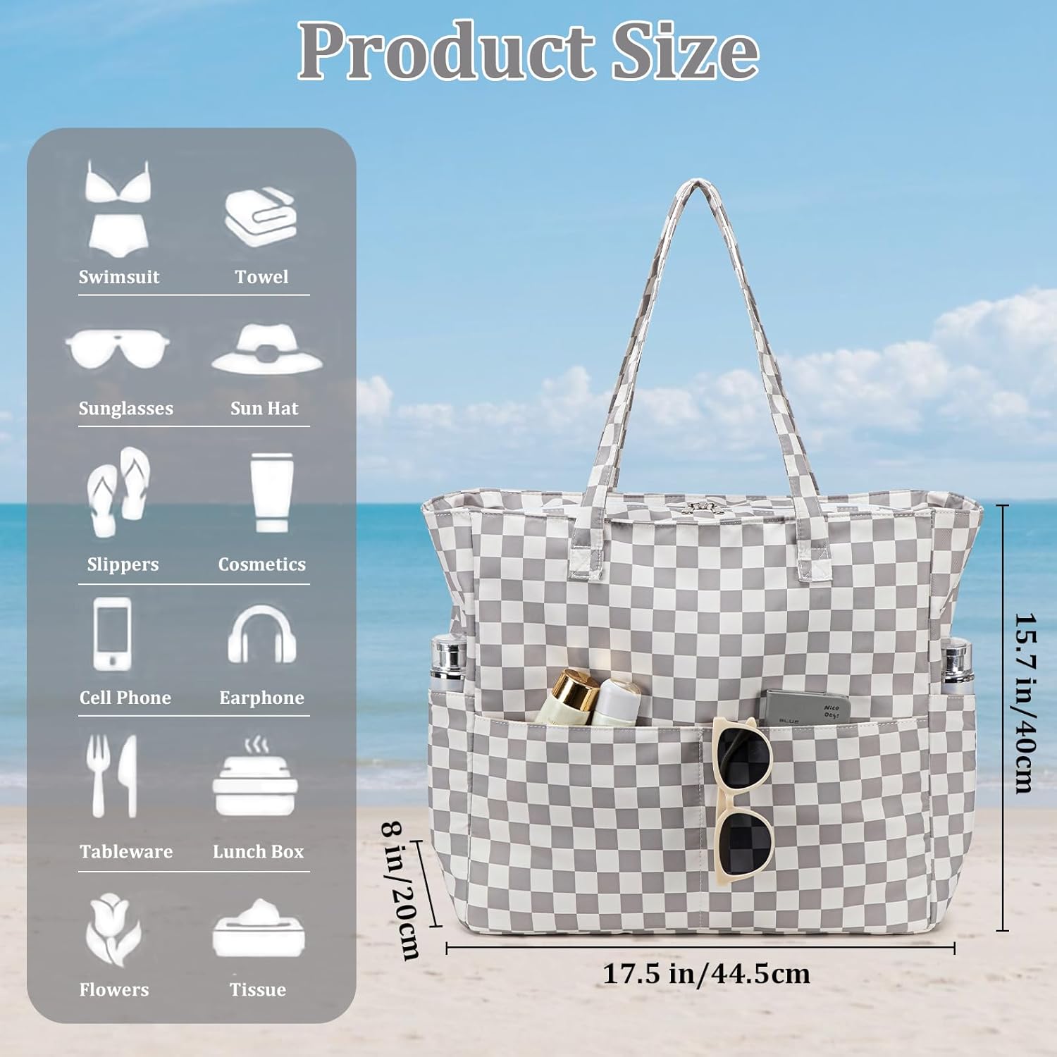 LEDAOU Large Beach Tote Bag Women Waterproof Sandproof Zipper Beach Tote Bag for Pool Gym Grocery Travel with Wet Pocket