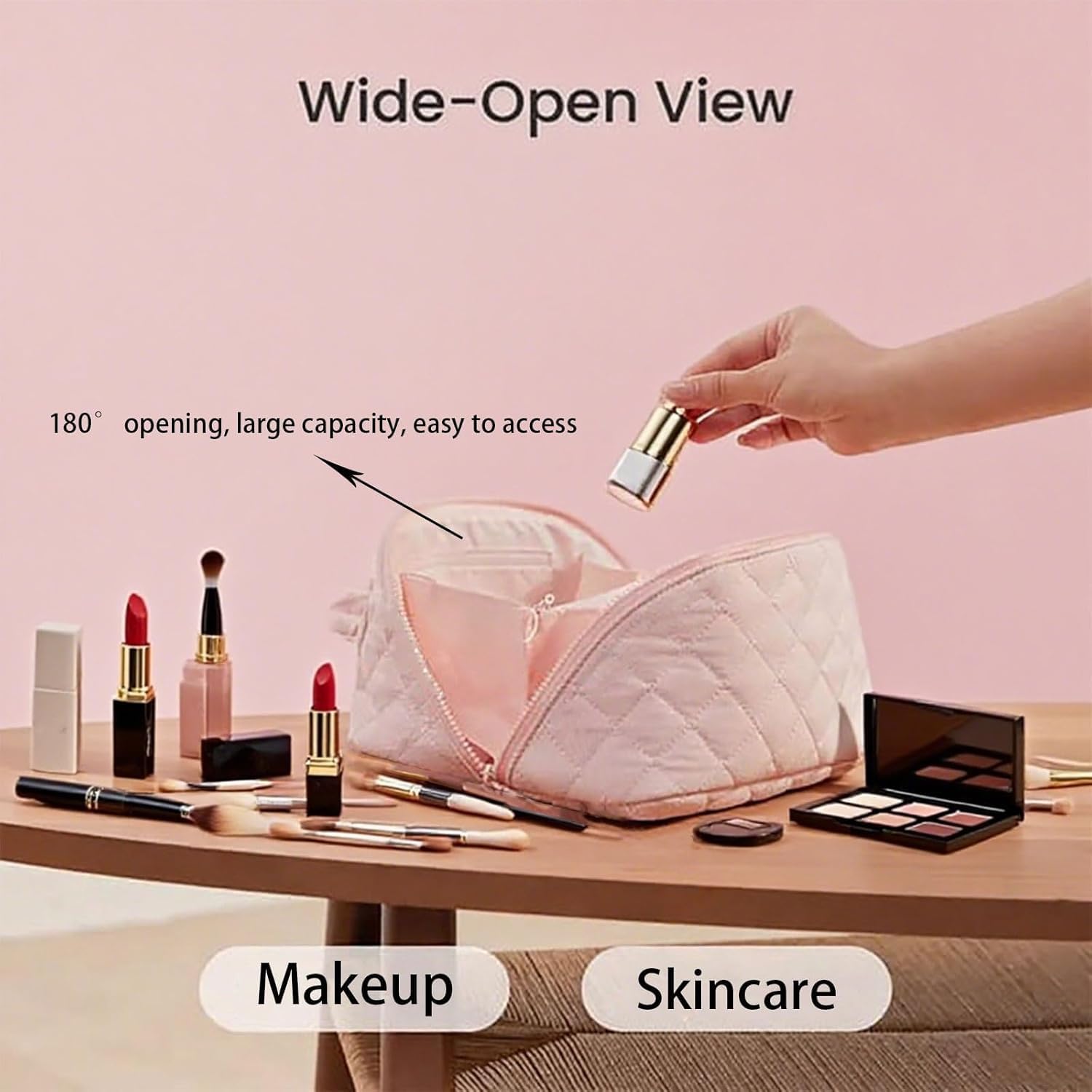 Petition Makeup Bag for Woman, Festivalment Makeup Bag, Wide Open Lay-Flat Water-Resistant Cosmetic Case, Puffy Padded Organizer for Toiletries & Brushes Large Capacity with Compartments